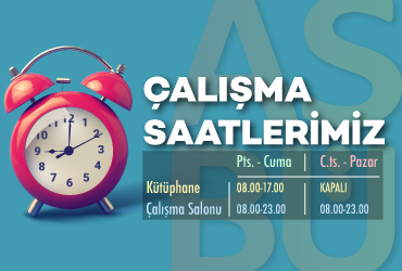 Duyurular Tümü 23 Ekim Lebib Yalkın & Mevbank Neo Mevzuat ve İçtihat Programı Deneme Erişimine Açılmıştır. 21 Ekim ASBÜ Kitap Tahlil Grubu Katılımcılarını Bekliyor!!! 21 Ekim KAMUSEARCH Veritabanları Deneme Erişimine Açılmıştır. Haberler Tümü 20 Ekim ASBÜ’de Minik Adımlar, Büyük Anlamlar 23 Haziran Prof. Masatoshi İshikawa Kitaplarını Kütüphanemize Hediye Etti. 18 Haziran ASBÜ Rektörü Prof. Dr. Musa Kazım Arıcan ASBÜ Kütüphane Kitap Dergisi Yazarları ile Bir Araya Geldi. ARAŞTIRMA Katalog Tarama Abone Veritabanları İntihal Kontrol Programları EKUAL Veritabanları HİZMETLER ISBN/ISSN Alma İşlemleri Protokoller Ödünç Verme Kütüphaneciye Sor HIZLI ERİŞİM Kütüphane Hesabım VPN VETİS Videolar Tüm Videolar Hocalarımızın Kitapları/ASBÜ İlahiyat Fakültesi Prof. Dr. Ejder Okumuş 15 Temmuz Söyleşileri / ASBÜ İlahiyat Fakültesi Prof. Dr. Ejder Okumuş Hocalarımızın Kitapları/ASBÜ İlahiyat Fakültesi Prof. Dr. Asım Yapıcı